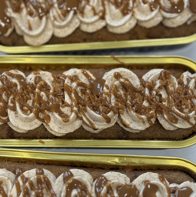 A soft, moist Biscoff cake flavoured with caramelised biscuit spread and biscuit pieces, topped with smooth Biscoff buttercream and finished with a light Biscoff drizzle.